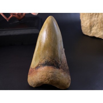 Carcharocles megalodon - Neogen - Miocene, Burdigalian (15.97 - 20.44 million years) - Indonesia. A huge, extra large and superb tooth, with a wonderful colouration, as characterise the megalodon of Indonesia. Beautiful teeth with a colour very similar to those of Chile and Peru, deposits closed for a long time. These megalodons have been on the market very recently.