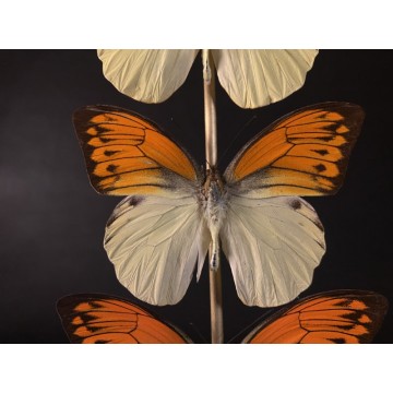 Glass dome with 9 Delias belladonna butterflies, these butterflies are of a great beauty, from the Himalayas to China and India to Thailand.