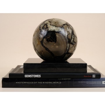 This beautiful septarian sphere polished from Madagascar with contrast exterior colors.