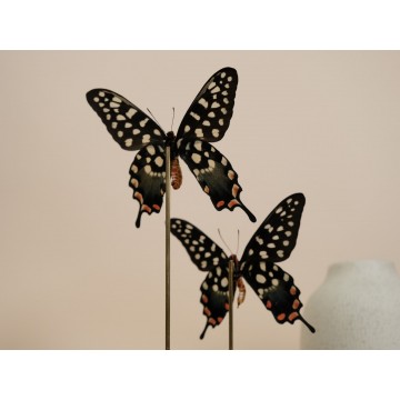 These two species belong to the Nymphalidae family, the metalic blue mixed with the black make them a unique decor piece.