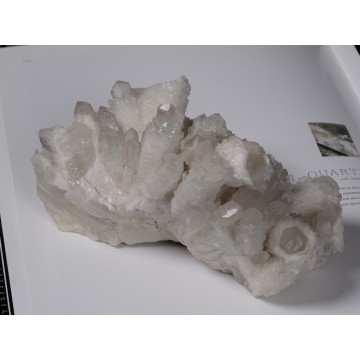 Quartz can be identified by its formation of crystal points covered by small terminations pointing towards the main point which, when viewed from above look like the diamond skin of a pineapple.