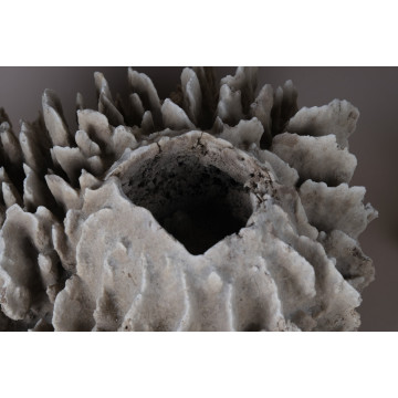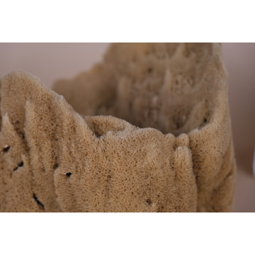 Giant Barrel Sponge (Xestospongia testudinaria) is a giant species of sponge found in the Indo-Pacific coral reefs. It commonly occurs at depths ranging from over 10 meters to 120 meters and can grow up to a diameter of 1.8 meters. The sponge typically exhibits a brownish-red to brownish-gray coloration, with a hard or stony texture. Due to its impressive size and estimated lifespan of hundreds to possibly thousands of years, the giant barrel sponge has earned the nickname "redwood of the reef." It displays a variable form, often appearing as a large, firm, barrel-shaped structure with a cone-shaped cavity at the top called the osculum. These sponges make beautiful decorative pieces. The specimen in question originates from Luzon, Philippines.