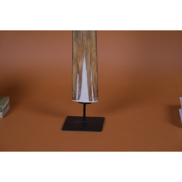 This skull is mounted in a black lacquered wood base, creating a clean and elegant display piece.