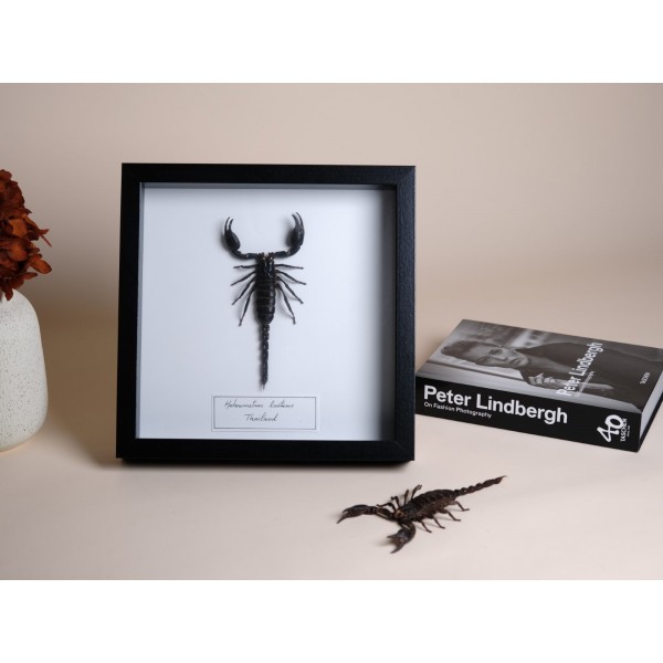 Superb Heteropterix dilatata from Malaysia in a black wood frame.