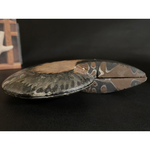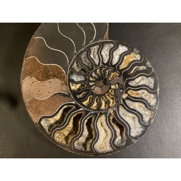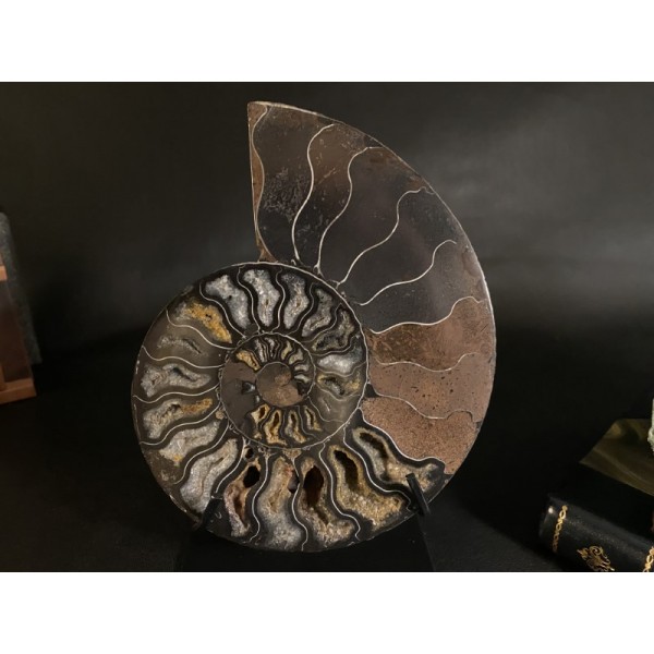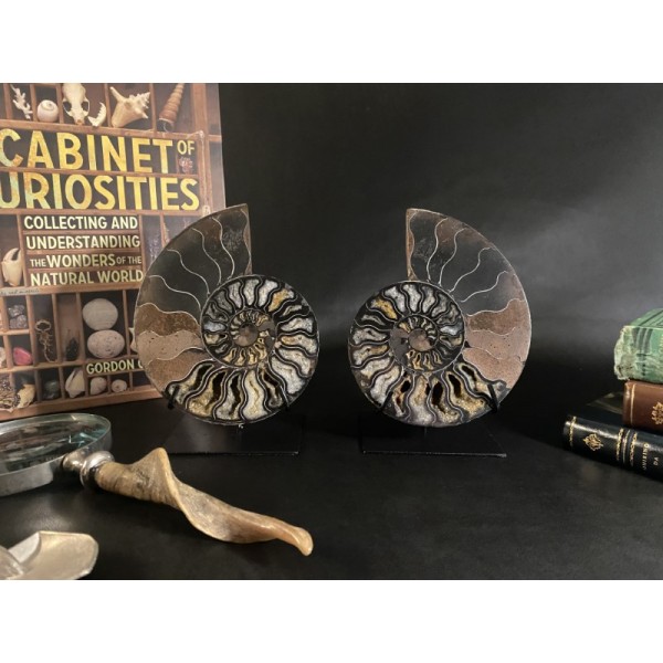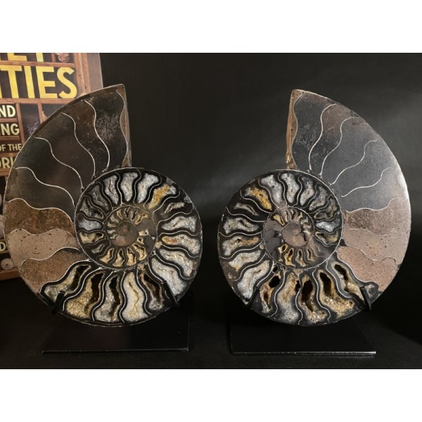 The fossils are exposed and given a high polish to better view the creatures from their surrounding matrix. The slab features very high relief as well as dramatic texture and detail they had tentacles and ink sacs, much like present-day squid.