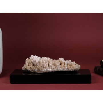 This exquisite specimen originates from Sefrou in the Atlas Mountains of Morocco, known for its rich mineral deposits. Mounted on a meticulously handcrafted dark brass base, this aragonite piece becomes a striking display of nature's artistry, adding an element of elegance to any space.