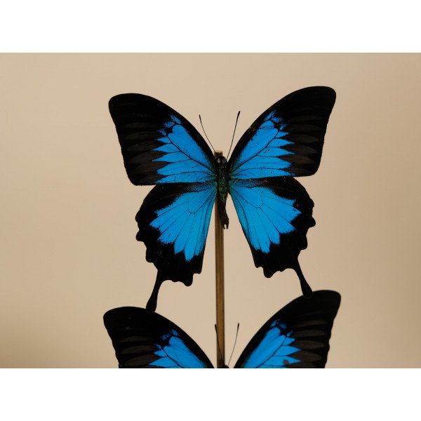 Attacus atlas or Atlas moth - a couple (male and female), from Thailand, in a black wood frame.