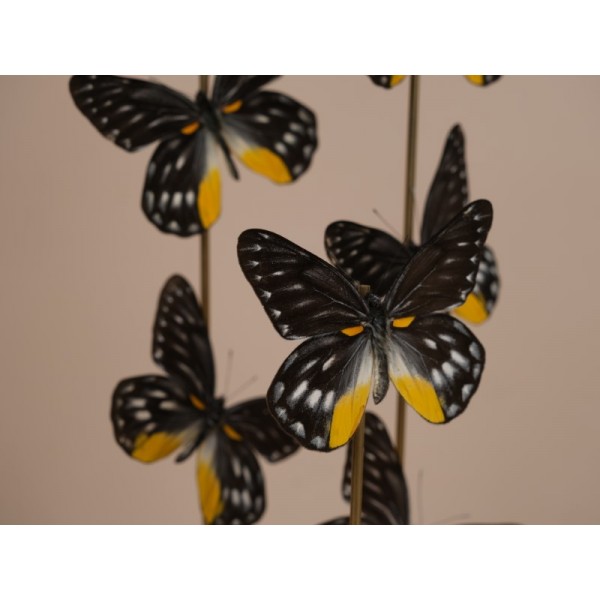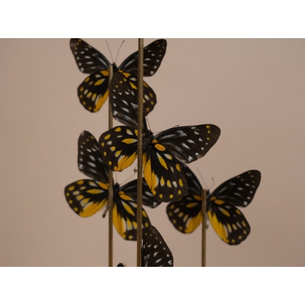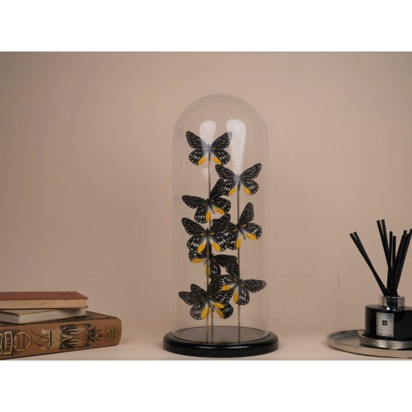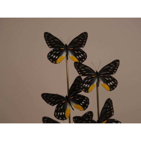 Glass dome with 9 Delias belladonna butterflies, these butterflies are of a great beauty, from the Himalayas to China and India to Thailand.