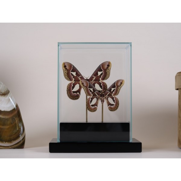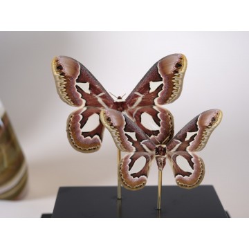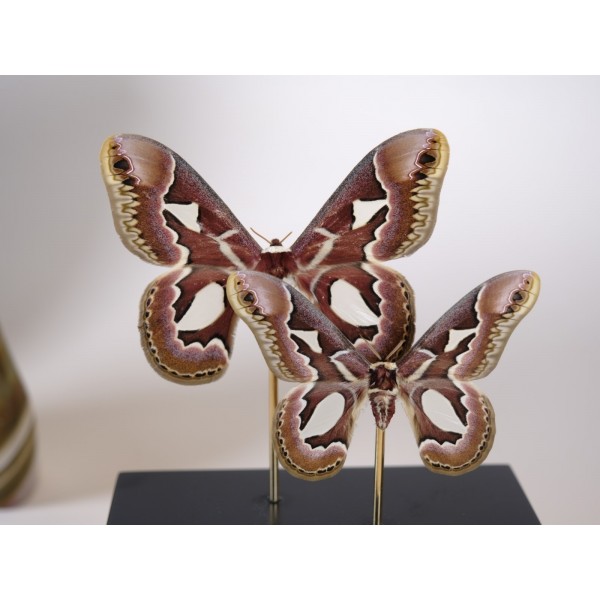 Male are smaller and shows strong green and black colour, female are much bigger and have dark brown colour with clouds of white. Due to habitat environment deforestation this species is know in appendix II of Cites and this ones have Nº E-08191/18 Bundesamt fur Naturschutz, Bonn – Germany.