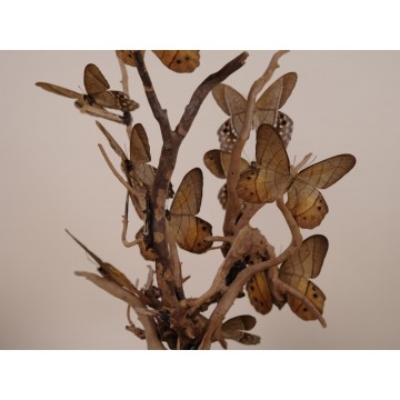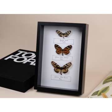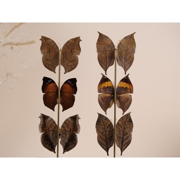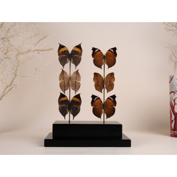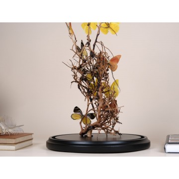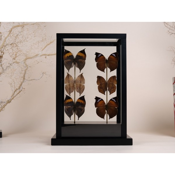 Papilio blumei, commonly known as the Peacock Swallowtail, is a stunning butterfly belonging to the Papilionidae family. Endemic to the Indonesian island of Sulawesi, this butterfly showcases a wingspan ranging from 120 to 140 mm. One of the most captivating features of P. blumei is the metallic hues adorning its wings, which become particularly mesmerizing when observed from specific angles. What makes this butterfly truly remarkable is the presence of rows of minute concave surfaces on its wings, reflecting light in a multitude of ways. Notably, the central concave surface emits a yellow-green light, while the edges shimmer with a captivating blue. This collection includes four specimens, each meticulously preserved in a handmade glass dome.