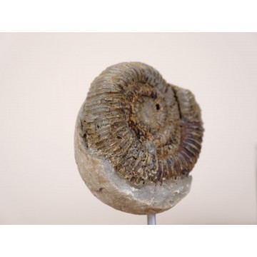 Perisphinctes sp. Ammonite from late Jurassic Period (160 million years), mounted in a exotic Tacula wood base.
