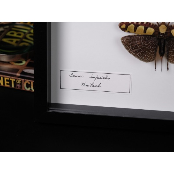 This one came from Thailand, mounted in a black wood frame.