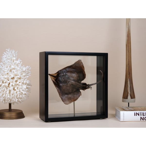 Guitarfish, a remarkable shark species that combines the elegance of rays and the intrigue of sharks. This exquisite creature, from Madagascar, is mounted in a splendid glass vitrine, adds a touch of natural beauty and marine allure to any decor.